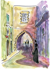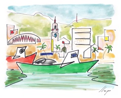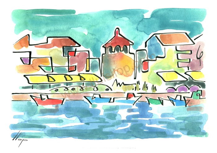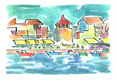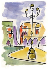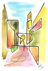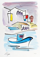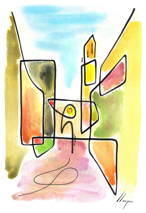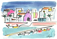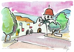 Es la primera sèrie, on vaig experimentar amb la "línia continua". Els temes van ser paisatges dels llocs on he viscut o he freqüentat mes sovint. Llocs estimats! Els meus pobles. Son aquarel·les de petit format que van ser els primers originals per digitalitzar i estampar (electrografies 30x21).