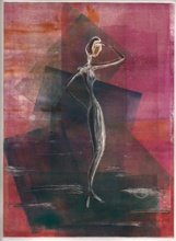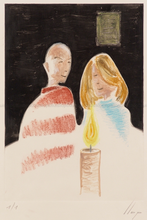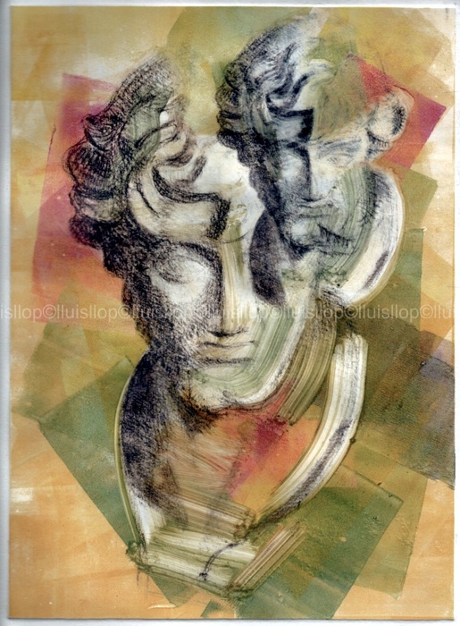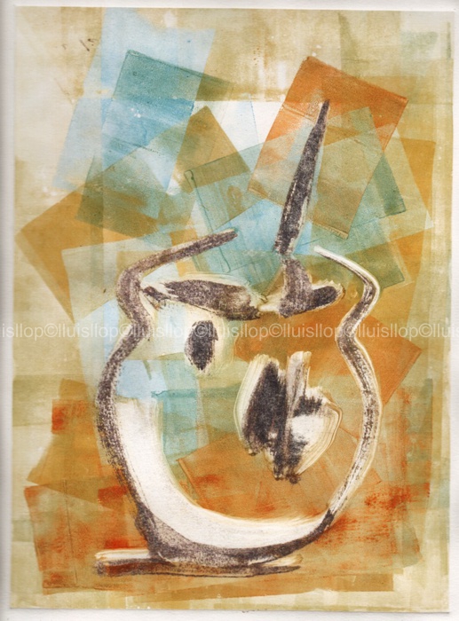 Son estampes fetes sense matriu, per tant son úniques. No hi ha tiratge o sèrie. Es pinta amb tintes d'impremta o colors a l'oli damunt d'una superfície llisa. Jo normalment utilitzo planxes de policarbonat transparent. Finalment la passada de tòrcul i obtinc la estampa única i irrepetible. |